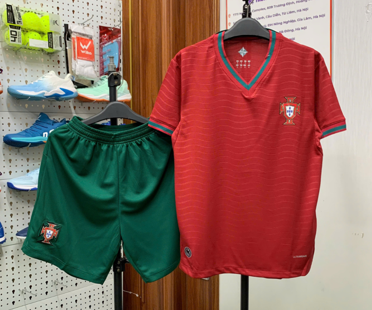 Mẫu áo bóng đá đội tuyển Bồ Đào Nha màu đỏ 2026–2027 mang tinh thần mạnh mẽ, rực lửa đúng chất “Seleção”. Thiết kế kết hợp nét truyền thống với hơi hướng hiện đại, nổi bật với tông đỏ chủ đạo đầy năng lượng. Logo đội tuyển Bồ Đào Nha dạng huy hiệu được in rõ ở giữa ngực, tạo điểm nhấn nhận diện cực dễ.