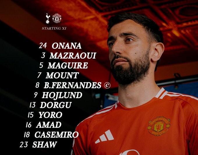 Manchester United: Andre Onana, Leny Yoro, Harry Maguire, Luke Shaw, Noussair Mazraoui (Dalot 85′), Casemiro, Bruno Fernandes, Patrick Dorgu (Mainoo 90′), Amad Diallo, Mason Mount (Garnacho 71′), Rasmus Hojlund (Zirkzee 71′).