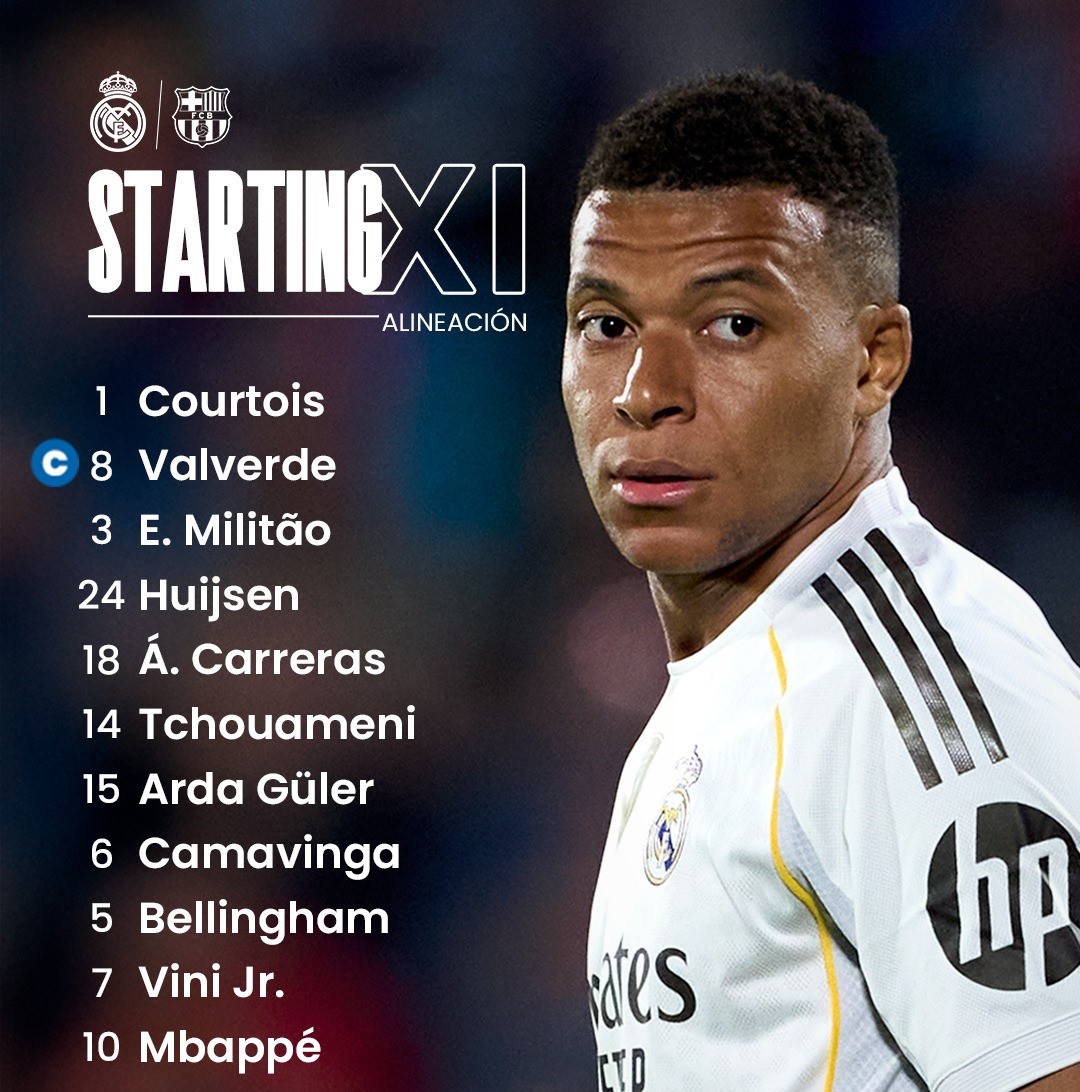 Real Madrid: Thibaut Courtois, Federico Valverde (Carvajal 72′), Eder Militao, Dean Huijsen, Alvaro Fernandez Carreras, Eduardo Camavinga, Aurelien Tchouameni, Arda Guler (Brahim Díaz 66′), Jude Bellingham (Ceballos 90′), Kylian Mbappe (Gonzalo García 90′), Vinicius Junior (Rodrygo 72′).