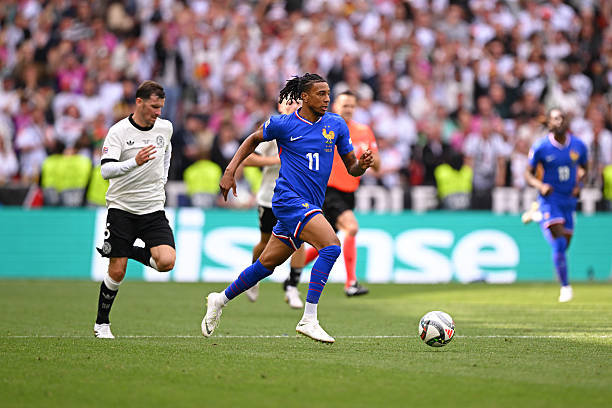 Phút 38, Đức phối hợp như “dạo chơi” trong vòng vây hàng thủ Pháp, trước khi Wirtz dứt điểm chéo góc khiến thủ môn Maignan đứng chôn chân nhưng cột dọc đã cứu thua cho Pháp. Sau đó, Maignan đã có thể ra tay từ chối pha dứt điểm cận thành của Woltemade.