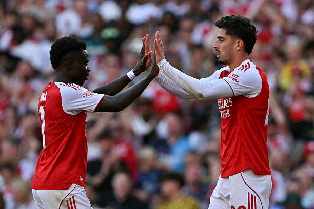 Arsenal: David Raya, Jurrien Timber, William Saliba, Gabriel Magalhaes, Riccardo Calafiori, Martin Odegaard, Martín Zubimendi, Declan Rice, Bukayo Saka, Viktor Gyokeres, Gabriel Martinelli.
