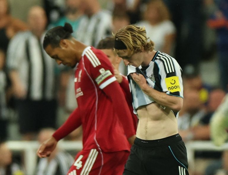 Chẳng những rơi vào thế bị dẫn bàn mà cuối hiệp 1, Newcastle còn lâm vào tình cảnh mất người khi Gordon phải nhận thẻ trực tiếp sau tình huống vào bóng có phần triệt hạ với Van Dijk. Ngay đầu hiệp 2, Liverpool đã gia tăng được cách biệt sau cú dứt điểm của Hugo Ekitike.